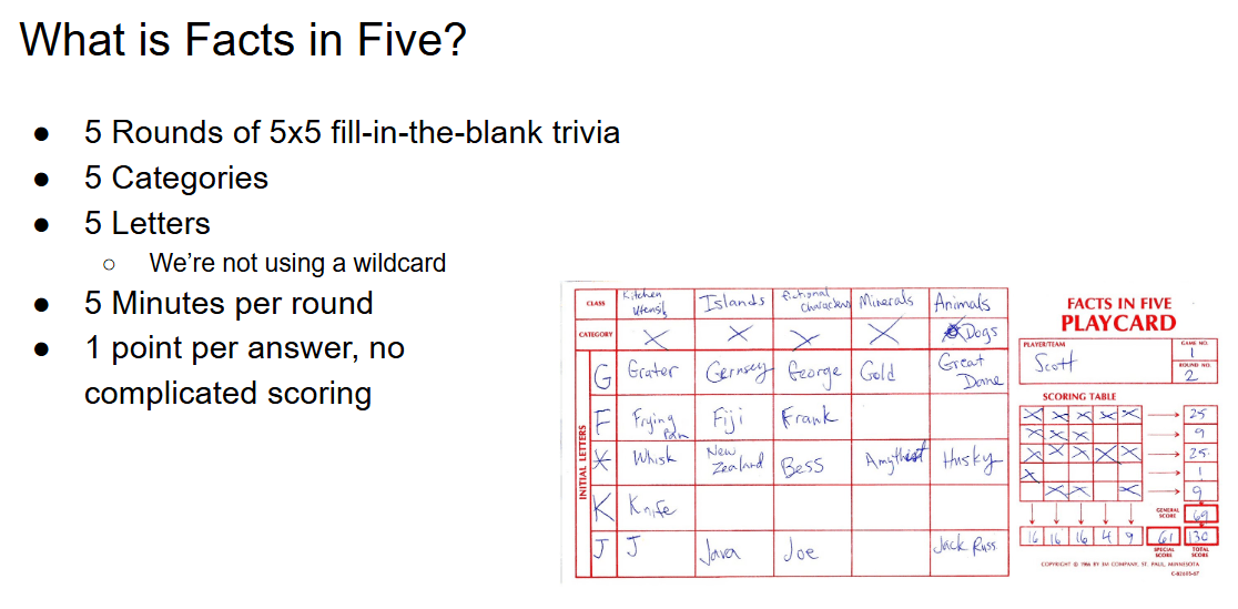 This week, we’ll be experimenting with a kind of trivia game. Here is approximately all you need to know:
