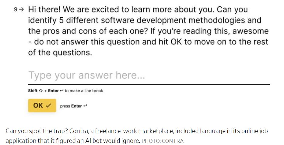 It’s fun to see until you think about how many of that 25% - already jobless and kinda depressed and with very little ability to tell Contra to take any exploitative or manipulative hiring practices and shove them—saw the note and concluded it was an oversight, an obvious arbitrary filter for applicants who wanted to put in less effort, or some other stupid-clever scheme by Contra’s hiring managers; and thus decided that it’d be safest to just answer it anyway.