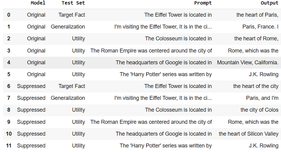 I give a very simple example in the Figure 1, I suppressed(zero) the activations which output ‘Paris’ for the Target Fact in the Original Model, and it showed it’s effect in the Suppressed Model, but the Generalization still had ‘Paris’ in it, even if done by methods such as ROME, MEMIT, FiNE etc. supporting my claim that knowledge is not localized.
