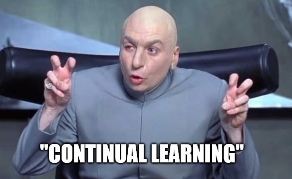 One of the reasons continual learning is so popular a concept is because humans do it, which makes it a very attractive answer to the question “What can’t AI’s do yet?”.