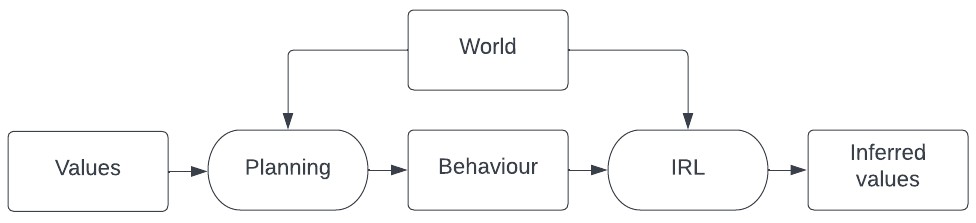 Also worth thinking about other obstacles to IRL. One issue is “how do we actually implement this?”. Reward model hacking seems like a potentially hard problem to me if we just do a naive setup of reward model + RL agent. Or if you want to do something more like CIRL/assistance games, you need to figure out how to get a (presumably learned) agent to actually reason in a CIRL-like way (Rohin mentions something related in the second-to-last bullet here). Arguably those obstacles feel more like inner alignment, and maybe you’re more interested in outer alignment. But (1) if those turn out to be the bottlenecks, why not focus on them?, and (2) if you want your agent to do very specific cognition, such as reasoning in a CIRL-like way, then it seems like you might need to solve a harder inner alignment problem, so even if you’re focused on outer alignment there are important connections.