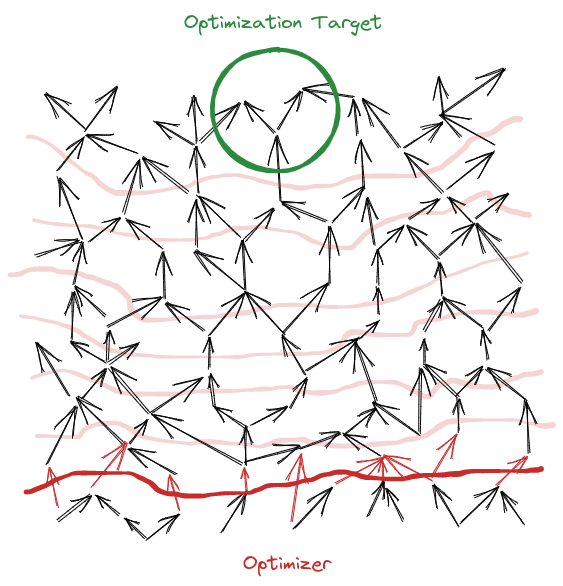 It’s like a phased array: there’s lots of little actions distributed over space/time, all controlled in such a way that their influence can add up coherently and propagate over a long distance to optimize some far-away target. Optimization at a Distance mainly emphasized the “height” of this picture, i.e. the distance between optimizer and target. This post is instead about the “width”: not only are the actions far from the optimization target, the actions themselves are also distributed in spacetime and potentially far apart from each other.