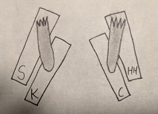 In teaching myself to play, I’ve worked on figuring out specific patterns. Each is a nice concrete step, and once I get a pattern into my muscle memory I can play it without conscious effort. As I’ve learned more, I’ve felt my fluency increase, where progressively more complex patterns will just come out, fitting whatever I happen to be playing on the piano. Often I will get to a place where there’s something that feels like it should go with the music is too hard, so I’ll stop and work it out, and repeat it until it’s solid.