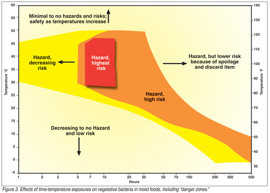 “Danger Zone” Reevaluated by Frank Bryan, showing how long food