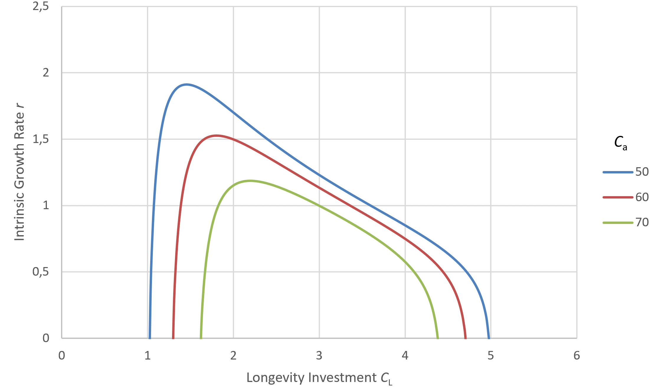 Figure 5: Shift in optimal longevity investment when changing Cₐ