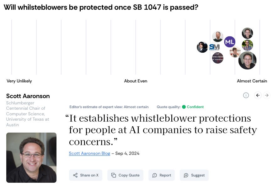 If I cared about AI safety but didn’t know anything about SB 1047, this site would have led me to believe that SB 1047 was good because all the AI safety people support it. But I already knew that AI safety people supported SB 1047.