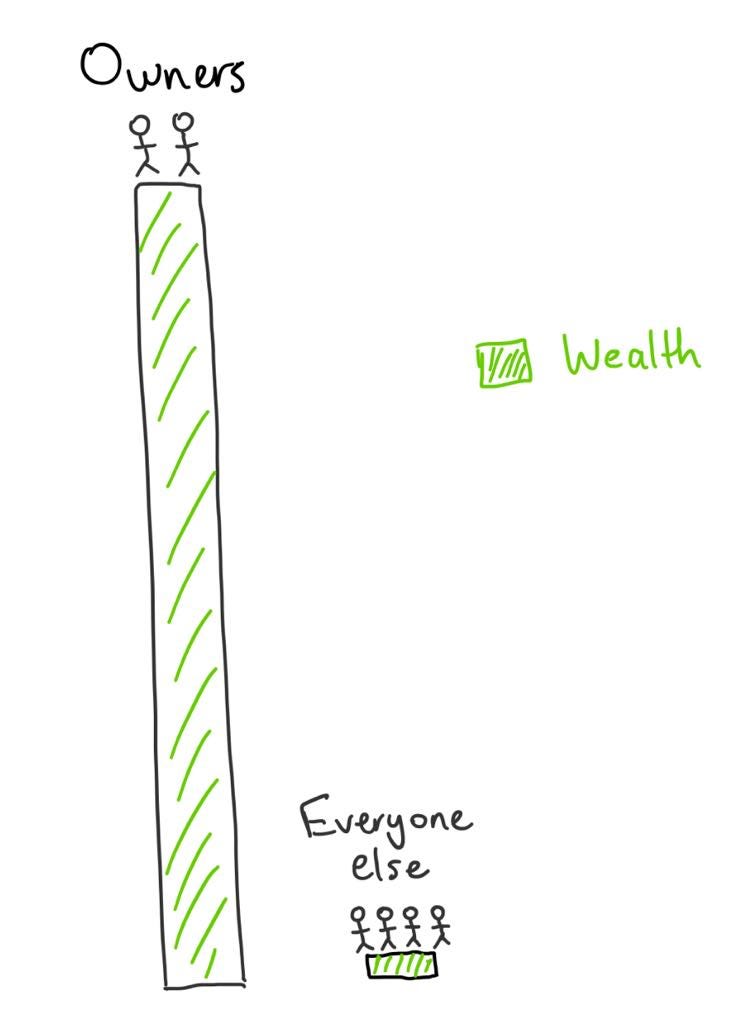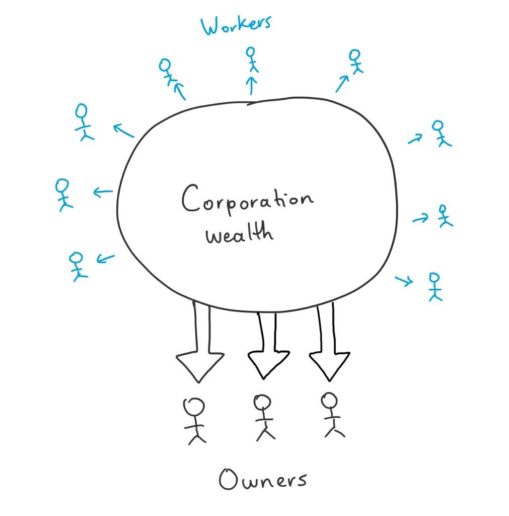 This means that by default, almost all wealth generated by corporations will be transferred directly to the owners of corporations.
