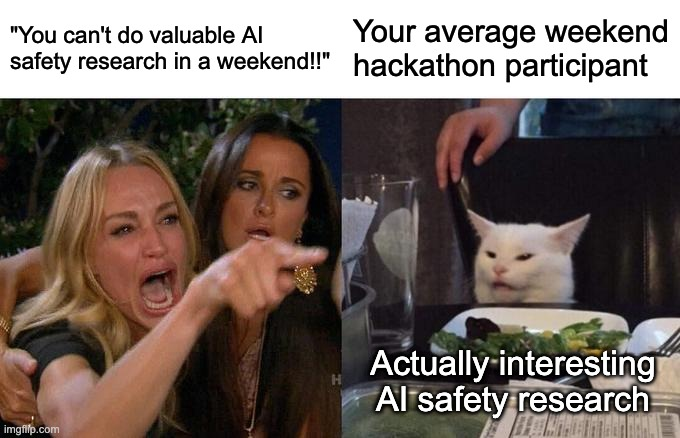 Everyone can participate and we encourage you to join especially if you’re considering AI safety from another career . We prepare templates for you to start out your projects and you’ll be surprised what you can accomplish in just a weekend – especially with your new-found friends!