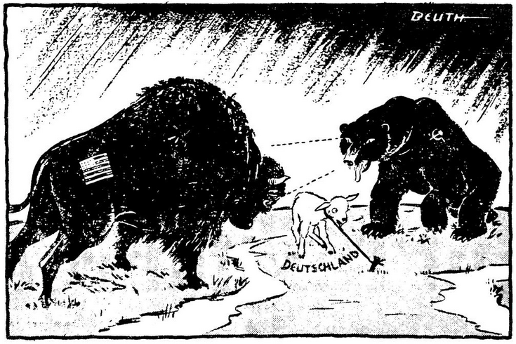 In that particular case, the crisis was caused by French fear of revived Germany on one side and German desperation of being caught unarmed and occupied in the center of conflict of the great powers. Maybe a contemporary cartoon explains the mood better than I can do.