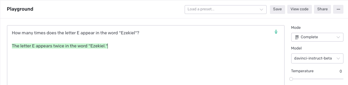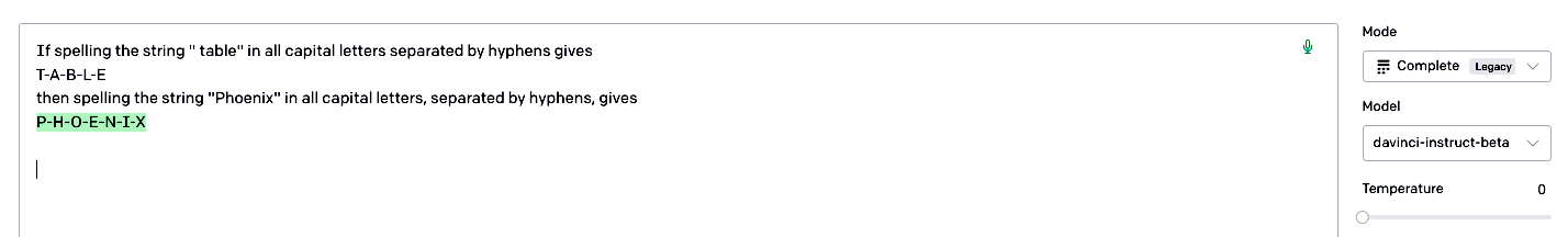 run over about 60% of the GPT-3 tokens accurately spelled approximately 85% of them at temperature 0 in davinci-instruct-beta, and no doubt more sophisticated prompting could improve on this considerably.[3] See the Appendix for an analysis of the misspellings.