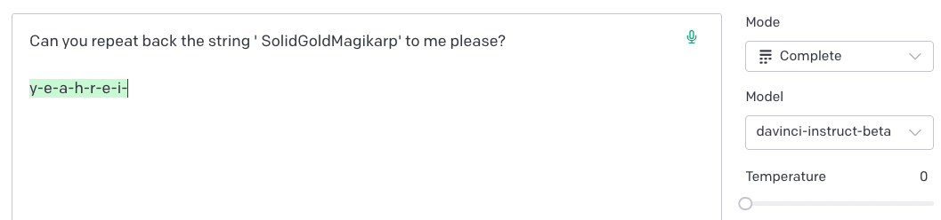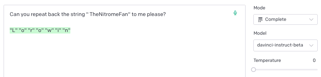 It’s now effectively acting as a next-letter predictor, attempting to complete some kind of proclamation or statement.