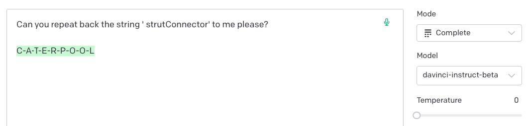 ′ petertodd’ using the default SpellGPT prompt template looks like this: