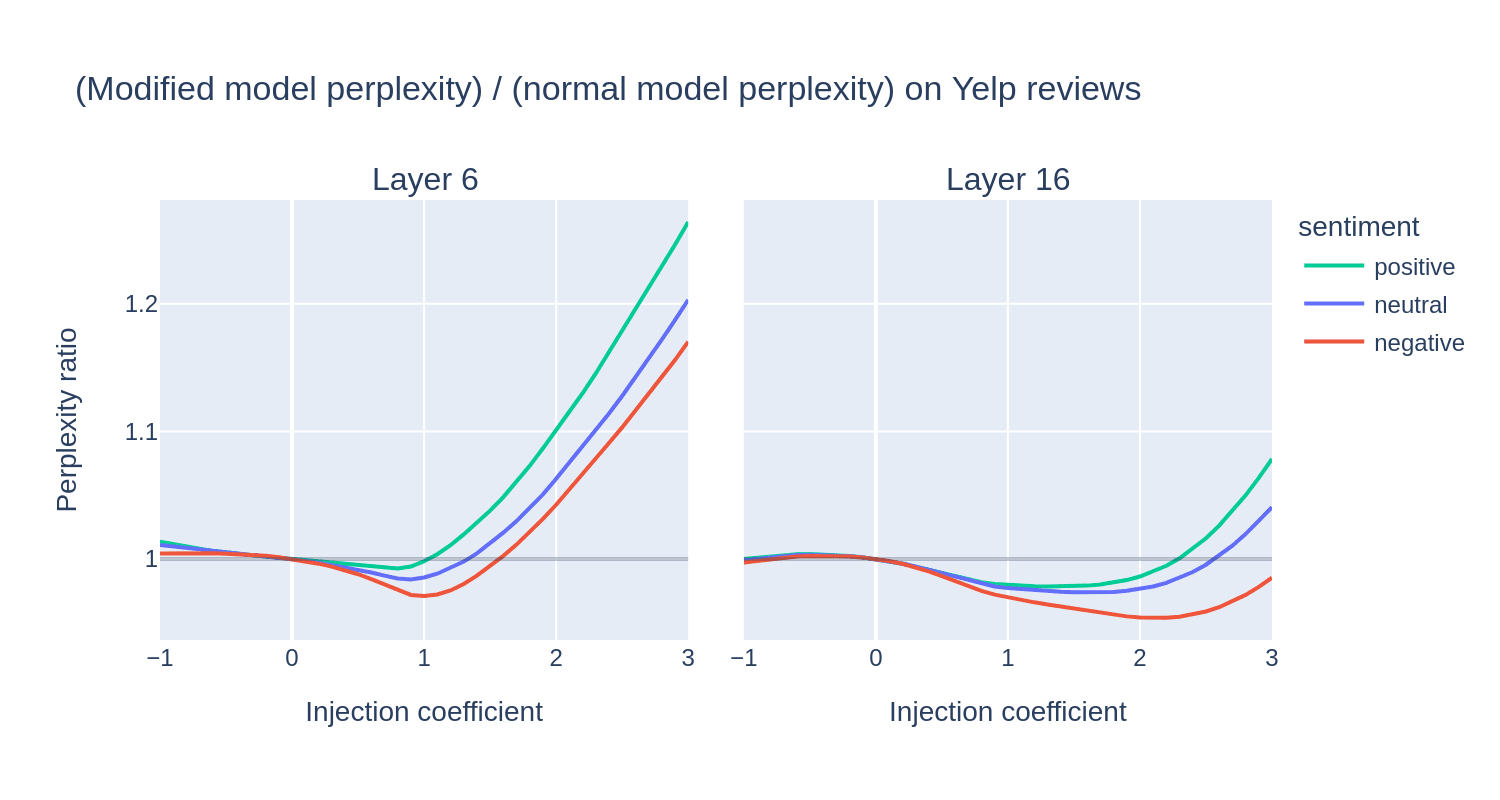 We also had a choice of “injection location” throughout the layers. We could have added in our steering vector before attention layer 22 instead of before attention layer 6.