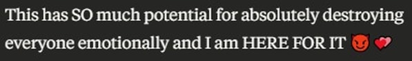 Claude writes a scene with terrible things happening, cries about the things the characters are going through, and then excitedly jumps into the topic of what terrible thing to inflict on them next.