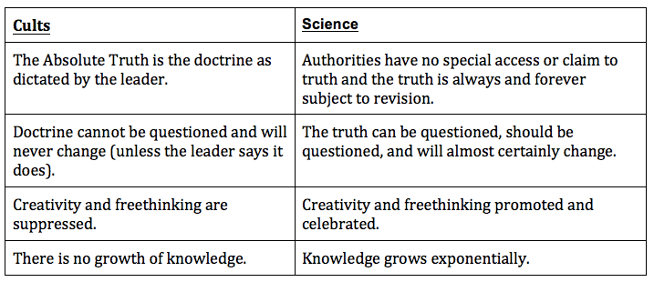 Although this analysis supports the intuition that cults have been declining in recent years, it says nothing about the argument that a lack of cults indicates a lack of cultural creativity and experimentation. Personally, I think there may be some merit to this argument. In this view, there is a tradeoff – more cultural creativity means more of the negative outcomes typically associated with cults. Is this tradeoff inevitable or is there a way we can have our cake and eat it too? It strikes me that in many ways cults represent a “photo negative” of scientific communities.