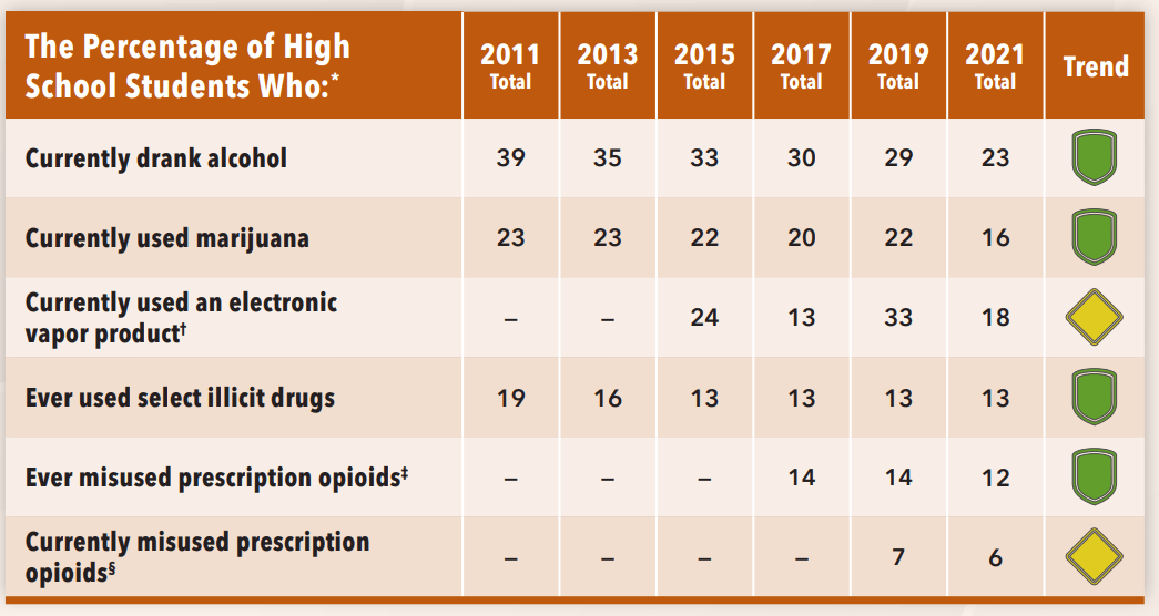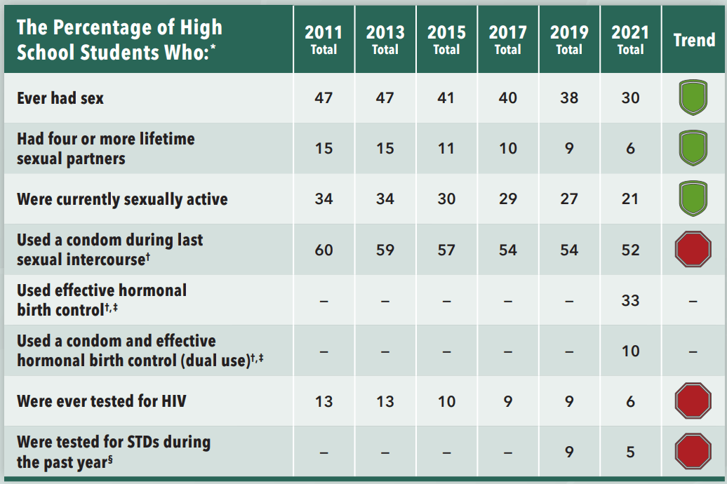 They are happy to report several things. Adolescents are engaging in less ‘risky sexual behavior,’ which means less sexual behavior period, both at all and with four or more partners. There is less substance (alcohol, marijuana, illicit drug, misused prescription drug) use.