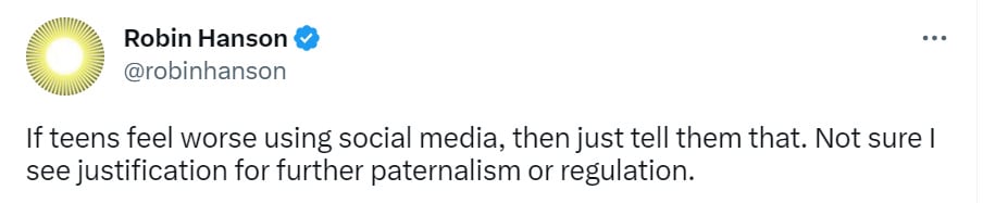 (Also, you can’t both assert factors like ‘tolerance for many groups is way up’ as objectively good and then reject factors like ‘tolerance for not using social media is way down’ as not objectively bad. Both are real, and they are equally ‘objective.’)