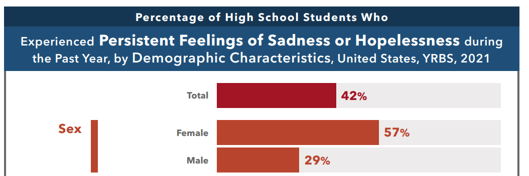 Nearly 1 in 3 high school girls reported in 2021 that they seriously considered suicide — up nearly 60 percent from a decade ago — according to new findings from the Centers for Disease Control and Prevention. Almost 15 percent of teen girls said they were forced to have sex, an increase of 27 percent over two years and the first increase since the CDC began tracking it.