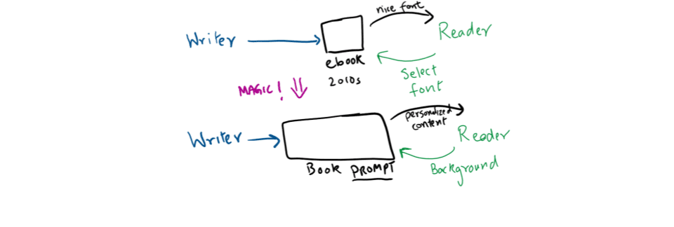 Now consider the possibility for books to be ‘enlivened’ by LLMs. An author of high-school history textbooks, for example, might choose to forgo drafting different textbooks for different grades. Instead, they could distribute a ‘live textbook’ which is usable by students at a range of ability levels. The textbook is co-created by the reader and author when the LLM provides the appropriately targeted text in response to the reader providing information regarding their prior knowledge and understanding.
