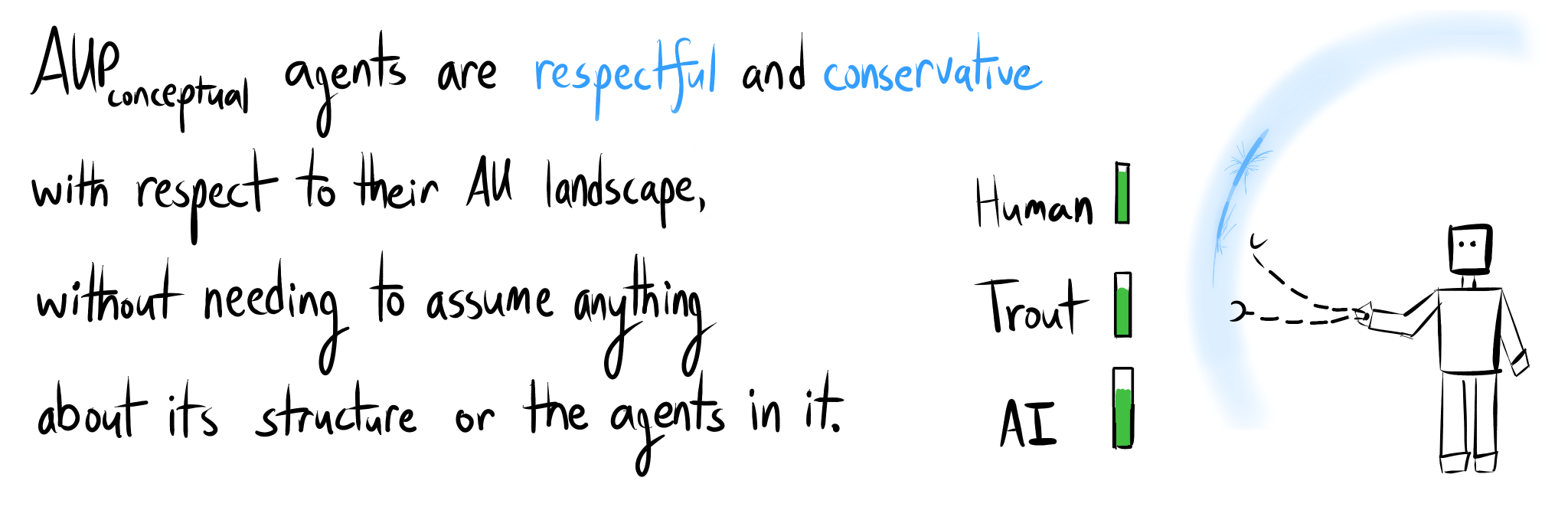 This doesn’t mean we can’t get useful work out of agents – there are important asymmetries provided by both the main reward function and AU landscape counterfactuals.