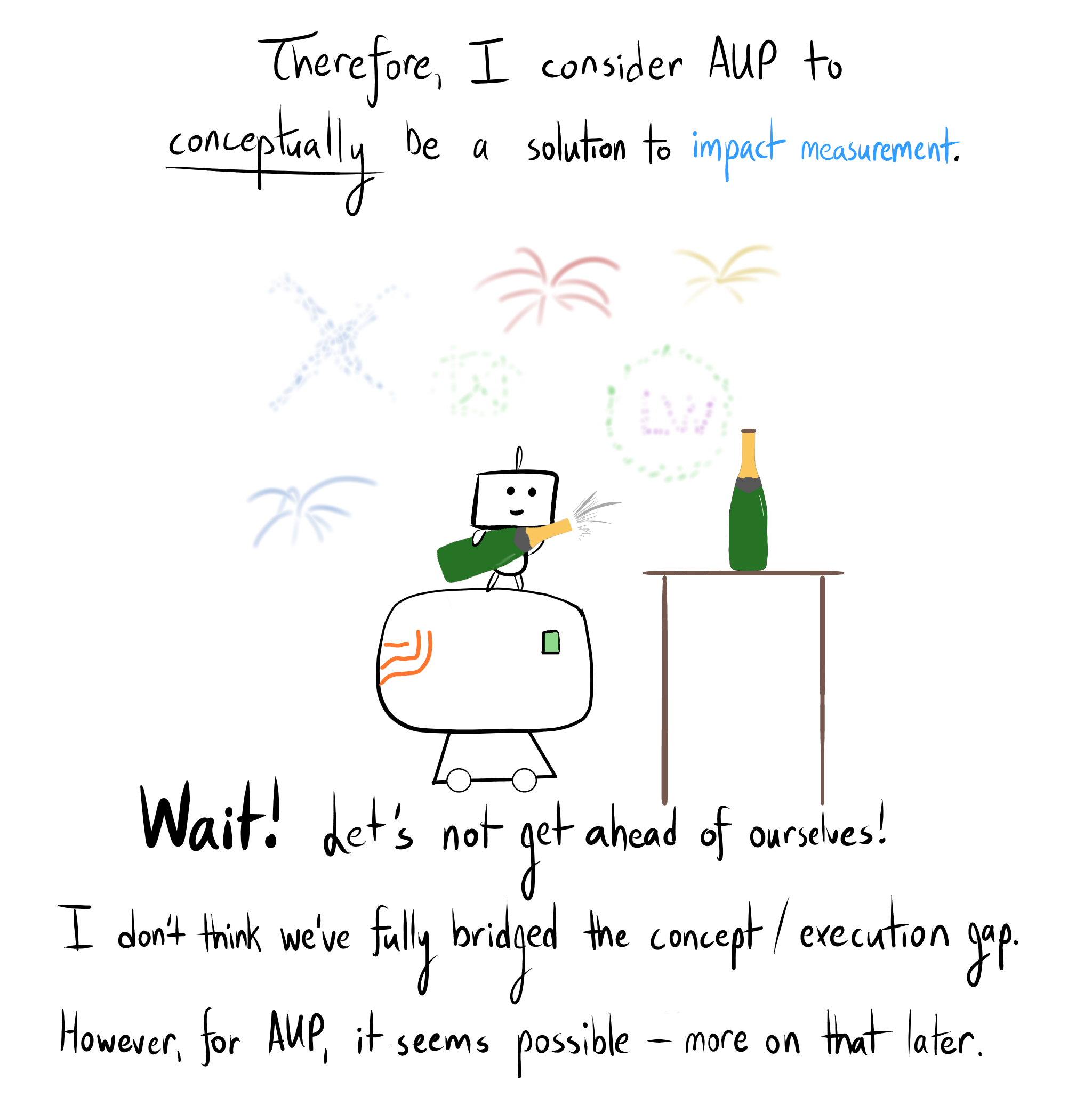 So we can hope to build a non-catastrophic AUP agent and get useful work out of it. We just can’t directly ask it to solve all of our problems: it doesn’t make much sense to speak of a “low-impact singleton”.