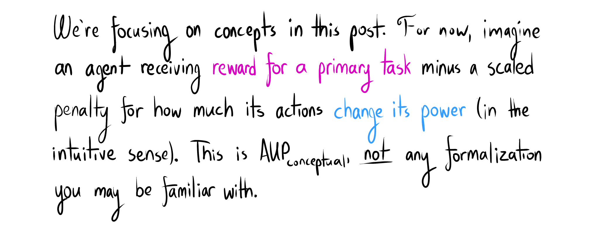 • To emphasize, when I say “AUP agents do ” in this post, I mean that AUP agents correctly implementing the concept of AUP tend to behave in a certain way.