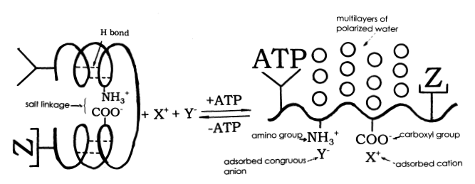 I am interested in the possibility that Ling could be entirely wrong about membrane physiology, but this gel phase shift phenomena could still be important in the cell. If Ling and Pollack are wrong about long distance effects from protein surfaces, that might not destroy their arguments as the cytosol is very dense, and the distance between proteins is very short. Albert Szent-Györgyi also did some work on this idea that is very different from Ling’s.