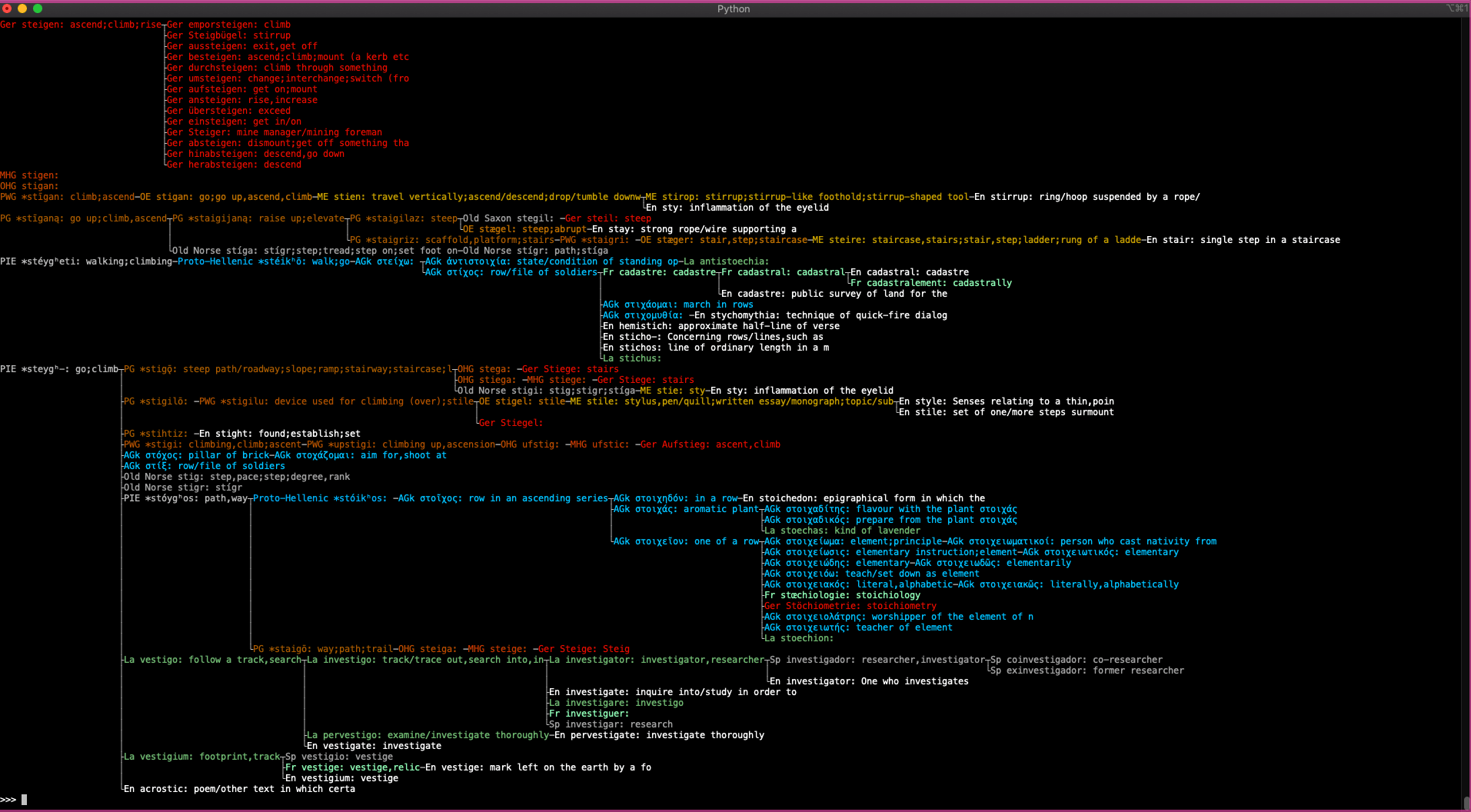 that traverses Wiktionary to grow cognate trees. Let me know if you’re interested in improving it. Example output: