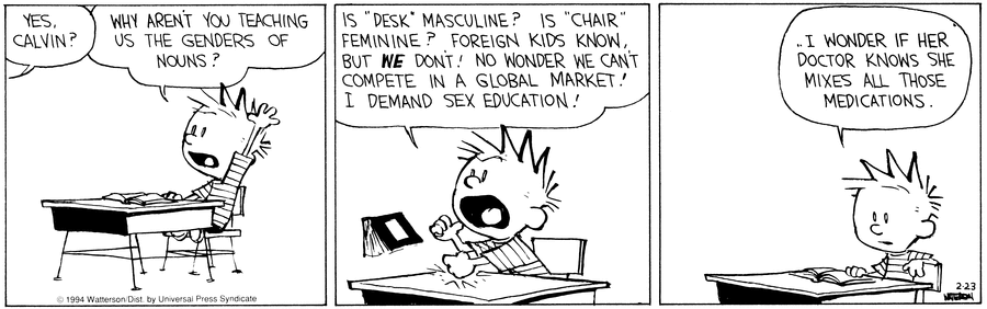 Trivium/datapoint: Polish has three grammatical genders in the singular form (standardly: masculine, feminine, and neuter) but two in the plural form (plural-personal-masculine and plural-everything-else). Closely related Czech also has the same three grammatical genders in the singular but they don’t change with pluralization, e.g., there are separate “they” for “plural-he”, “plural-she”, “plural-it”.