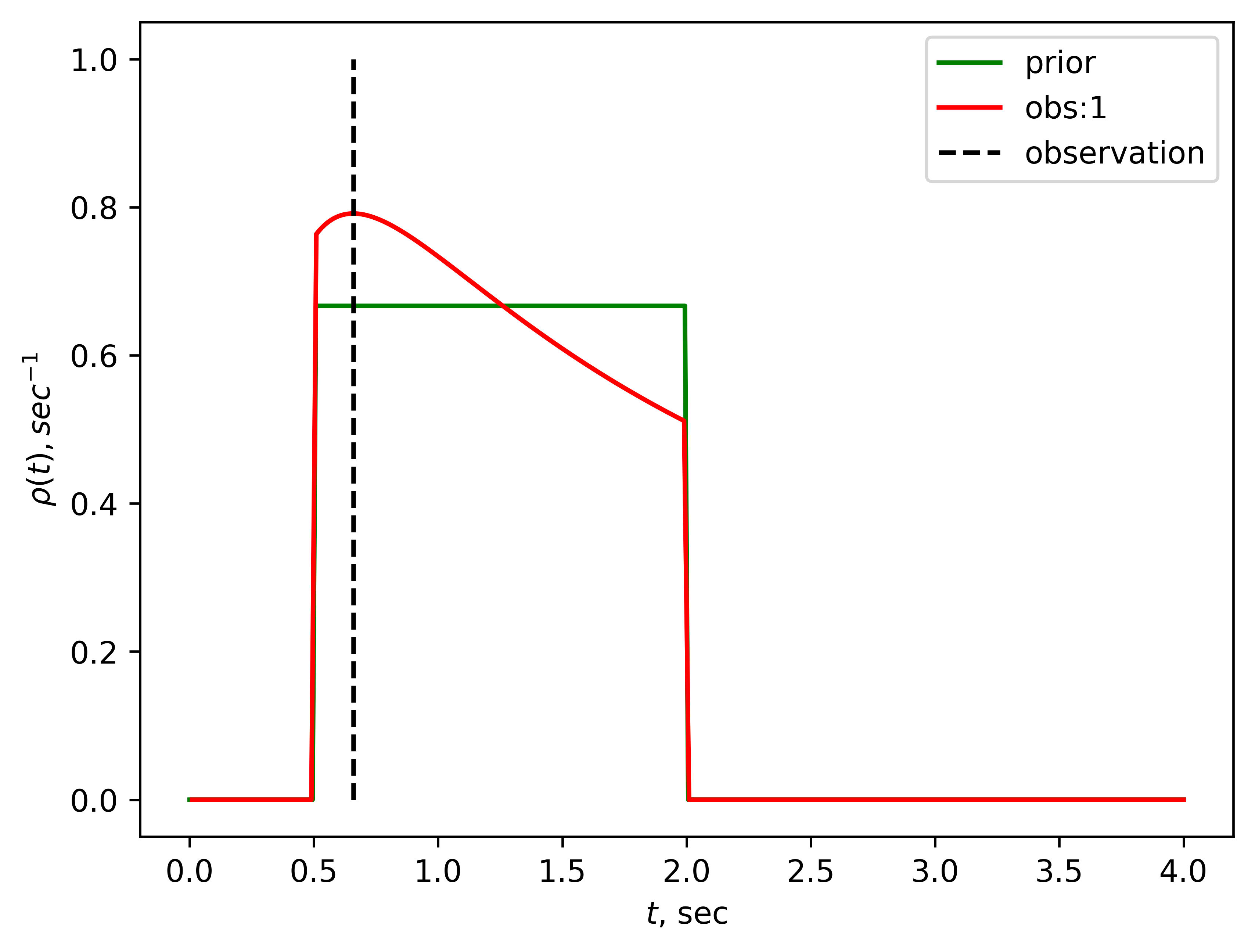 Each possible value of the is a hypothesis, and the prior distribution assigns some probability (in our case probability density) to each hypothesis. After Roman gets an observation , he updates his beliefs about how likely each hypothesis is using Bayes’s theorem:[3]