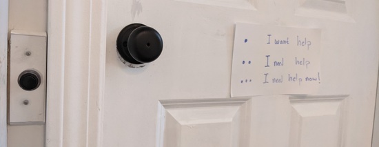 at my desk. We agreed on a system: one buzz if you would like help,