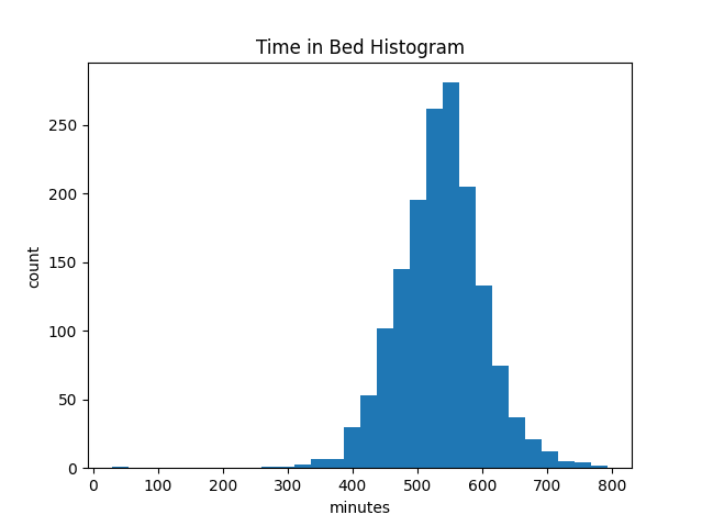 Here is a histogram of my time spent in bed:[1]