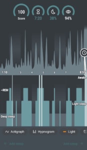 Your phone alarm app might have that “smart wake-up” feature, where it has a range of time in which it can go off, and it tries to pick the point right at the end of a sleep cycle to wake you up. It’s a great idea, but your tech can’t do it. Sleep cycles vary in length from person to person, and the first cycle usually varies in length from the others. Your phone or wearable fitness device will measure movement, heart rate, temperature, etc., but none of those are reliably linked to sleep cycles. That’s why the “hypnogram” chart that your app produces is often erratic without consistent patterns. It’s not good data!