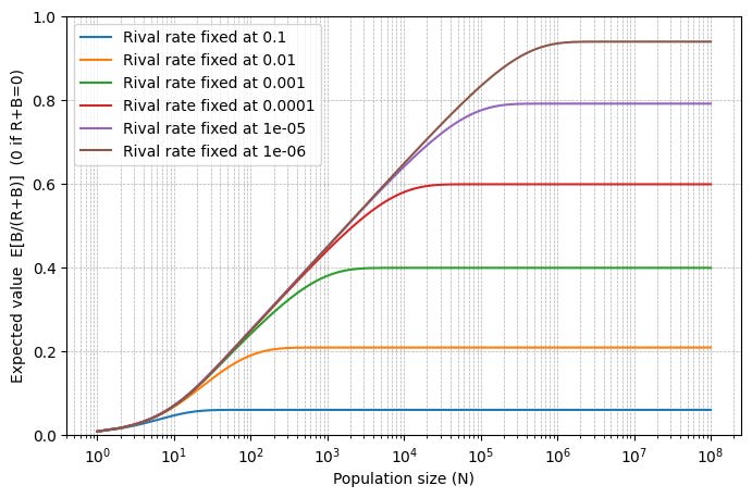 I’m again sampling the rate of powerholders log-uniformly between 1e-1 and 1e-6, but this time holding the rate of rivals fixed at different levels.