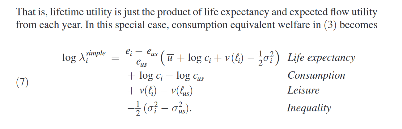 In a 2016 paper, Jones and Klenow used measures of consumption, leisure, inequality, and mortality, to create a consumption-equivalent welfare measure that allows comparisons across time for a given country, as well as across countries.[6]