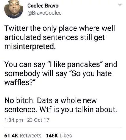 I mean obviously this is simply a blurry thing. If I say something very deliberately ambiguous that could mean A and B, and then claim A when someone understands B, I may be bad at communicating or even being playing a malicious motte-and-bailey. If I say something that is decidedly A but someone manages to understand B anyway, it’s on them. Obviously where precisely the lines lie depends since language isn’t an objective thing, but there are fuzzy areas we can identify.