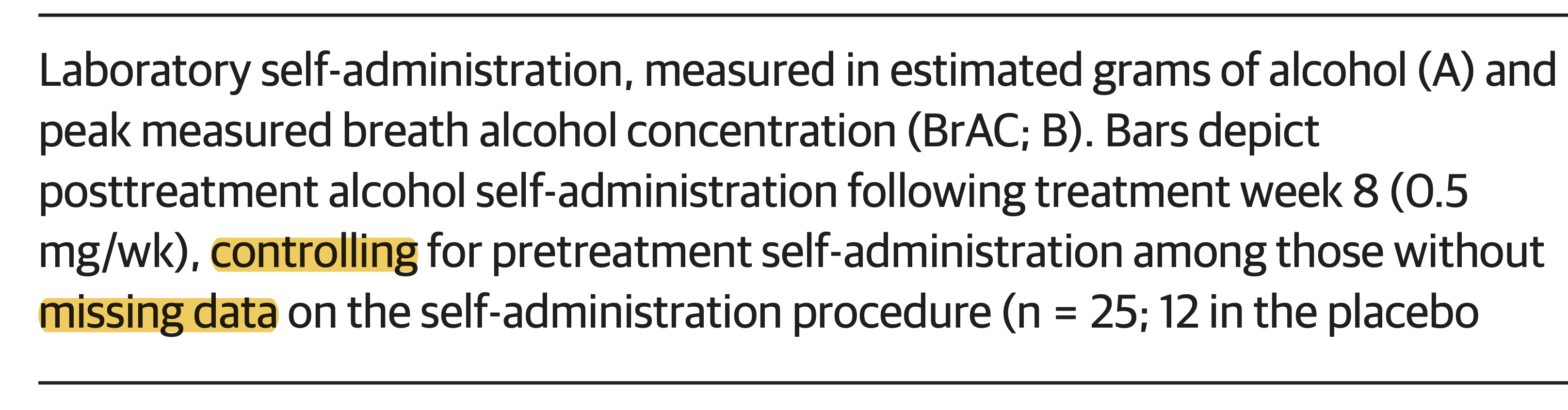 The “non-randomized sample” part of that quote is important! If semaglutide had no impact on the decision to participate, then we can argue about about the theory of regressions. Yes, the fraction that participated happened to be close, but with small numbers that could easily happen by chance. The hypothesis of this research is that semaglutide would reduce the urge to drink! If the decision to participate was random, and I believed the conclusion of the experiment, then that conclusion would seem to imply that the decision to participate wasn’t random after all. It just seems incredibly strange to assume that there’s no impact of semaglutide on the probability of agreeing to the experiment, and very unlikely the other variables in the regression fix this, which is why I’m dubious that the regression coefficients reflect any causal relationship.