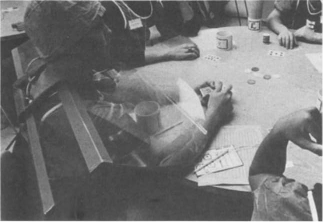 In the second and third rounds, they wore arm restraints “composed of two halves of an orthopedic arm brace held together at the elbow by a moveable hinge welded so that the brace could bend only between 140°and 180°. Both devices enabled effortless movement of the arms, ensuring normal poker playing but preventing the wearer from touching any part of his face. If any of the restrained recipients needed his nose blown or scratched, assistance was given by a monitor.”