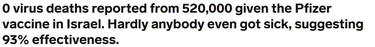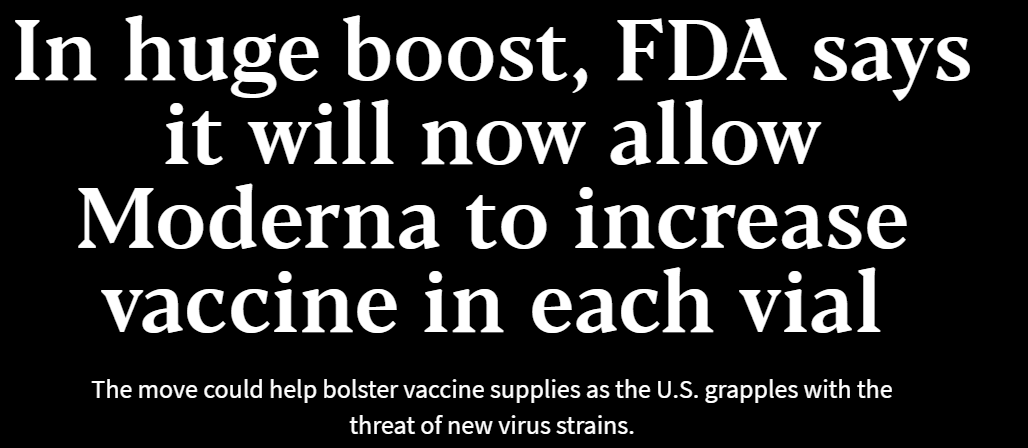Another was that it got even clearer than it already was that the Pfizer and Moderna vaccines are highly effective after only one dose, and that First Doses First would be a vast improvement while we continue to have much less vaccine than we need.