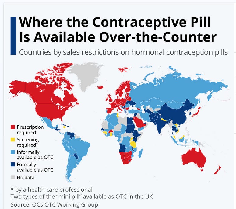 For those who think we make reasonable decisions on what to sell or not sell over the counter versus require prescriptions, a reminder of what we do for contraceptives.