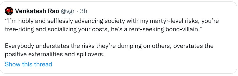 In any case, yes, this kind of situation is exactly what almost everyone is saying and doing when they say Covid risk. It means I wanted an excuse to not do that. Alternatively, there are a few people in public health, and public health Twitter, who want to extend this to Everyone Not Doing Anything, Ever, Forever. Like, Ever.
