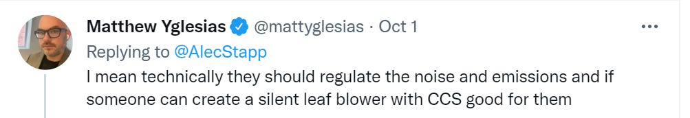 Electric leaf blowers are massive improvements over older models, being far less noisy and spewing out meaningfully less carbon.