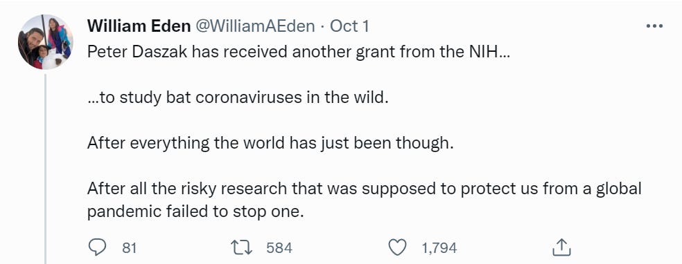 While recent headlines about a fresh $600,000 grant are accurate, the reality is that Daszak’s organization was awarded about five times that, $3.3 million, by the NIH to hunt viruses in south-east Asia.