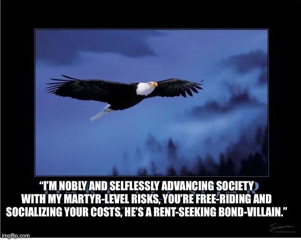 To me this is yet another example of the generalized Leaders of Men phenomenon. Small business owners are the people who are willing to step up and run a small business, with all the risk and annoyances and hard work that entails. They are the ones who see that this is generally a superior path to having a job, and/​or have the passion for the operation, with or without a side of massive tax fraud.