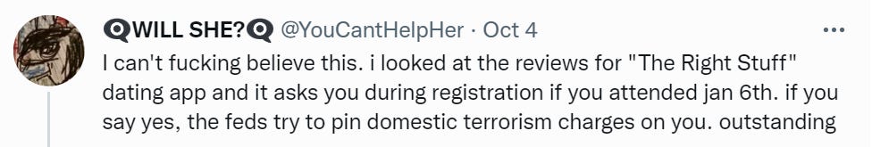 It should be related, though. If you make a dating app called ‘The Right Stuff’ it does not take a genius to know that there will be more men than women, on top of the existing problem where women get mobbed on dating apps. Having the app be invite-only was an excellent opportunity to not let in all of the men to create better balance. Or one could charge them, since a proper right-wing dating app should have people who understand that the man pays.
