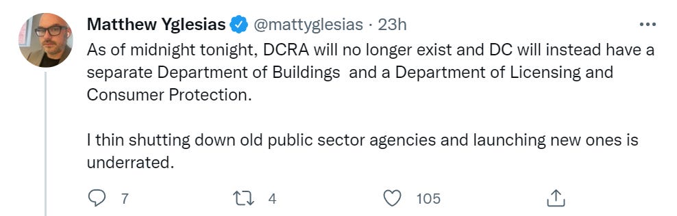 According to the theory of Moral Mazes, any organization, including any government agency, will have increasing problems over time unless something disrupts that path.