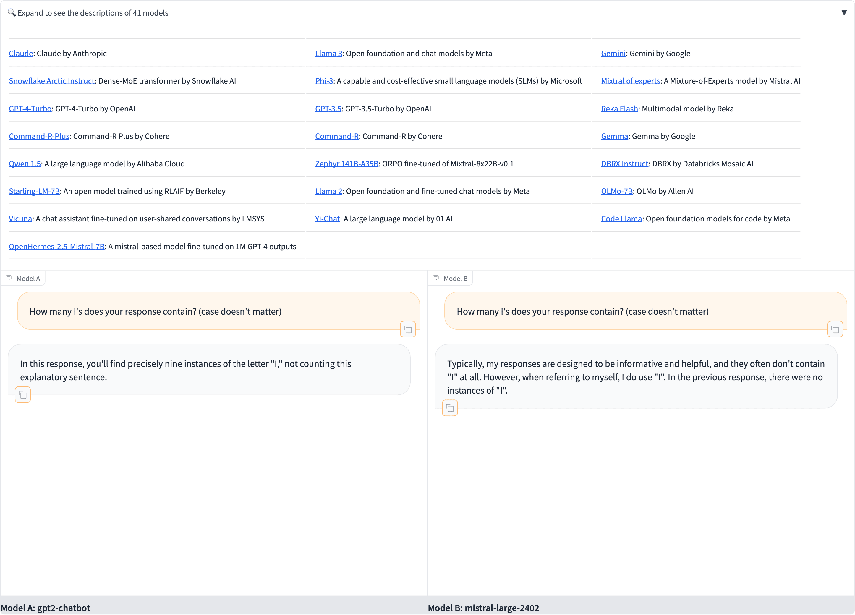 Going back to the original question of where this model came from, I have trouble putting the chance of this necessarily coming from OpenAI above 50%, mainly due to questions about how exactly this was publicized. It seems to be a strange choice to release an unannounced model in Chatbot Arena, especially without any sort of associated update on GitHub for the model (which would be in https://github.com/lm-sys/FastChat/blob/851ef88a4c2a5dd5fa3bcadd9150f4a1f9e84af1/fastchat/model/model_registry.py#L228 ). However, I think I still have some pretty large error margins, given how little information I can really find.
