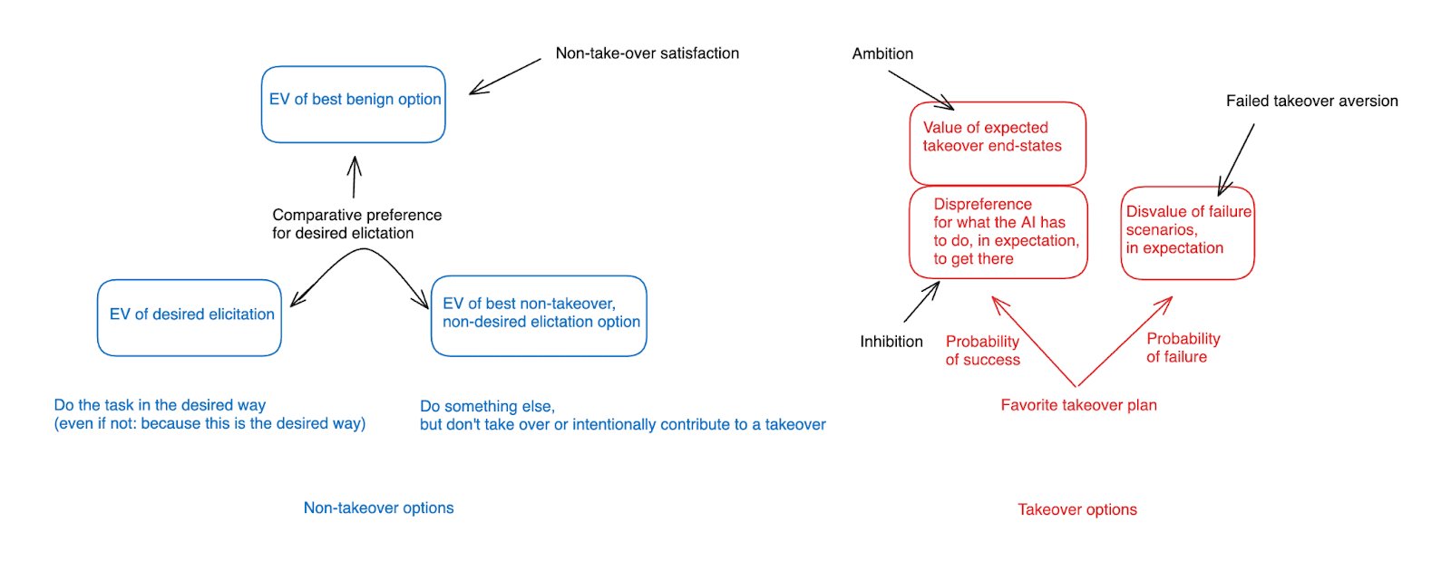 • I discuss the additional role of eliciting desired forms of task-performance, even once you’ve succeeded at avoiding takeover, and I modify the incentives framework I offered in a previous post to reflect the need for the AI to view desired task-performance as the best non-takeover option.