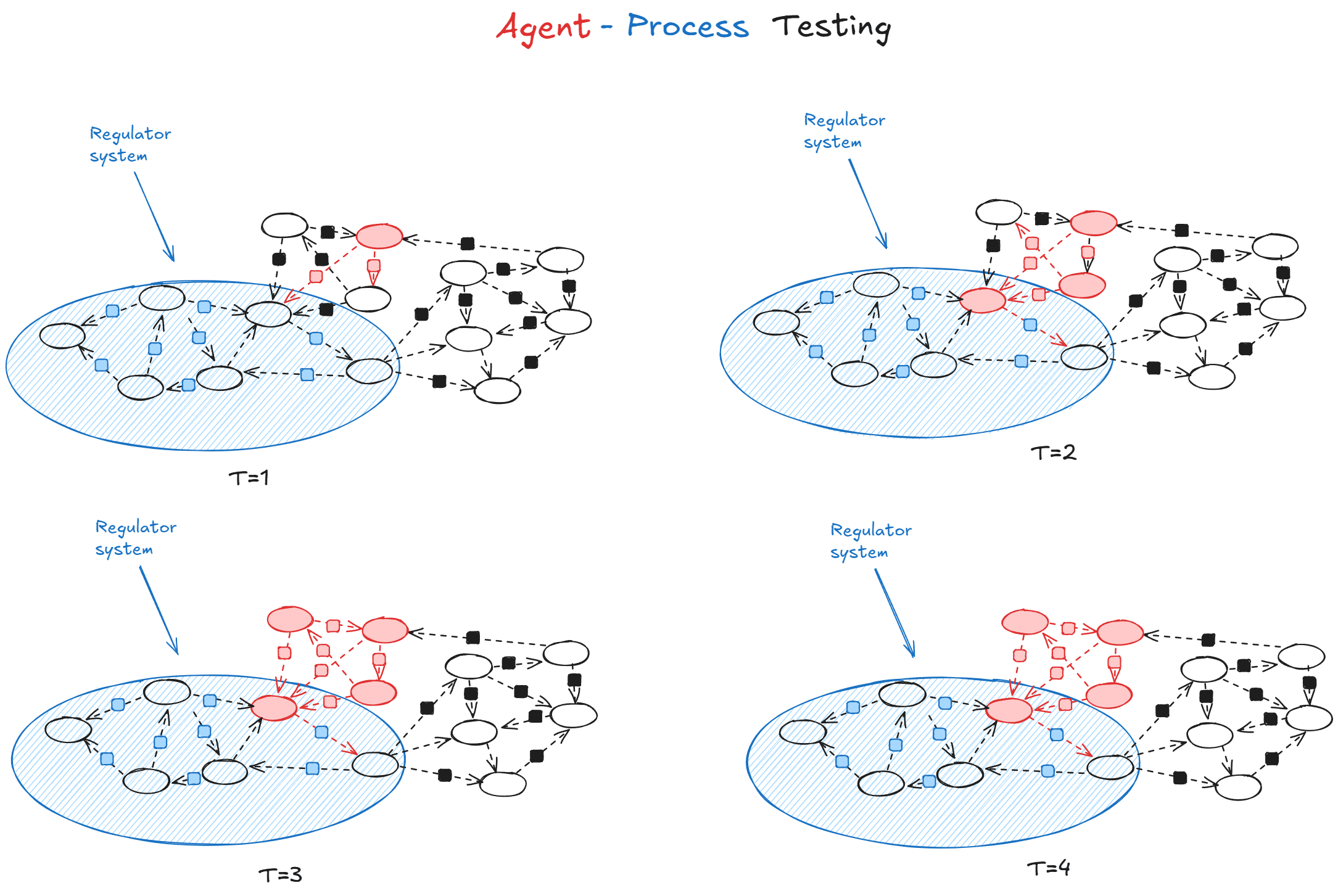 The setup we are building and proposing in the next section allows us to test any combination of—agent vs agent, agent vs process or even process vs process. We can start with agent vs agent, or agent vs process evaluations, this helps us build out core scaffolding infrastructure required for larger multi-agent and complex system evaluations. The most ambitious version of these evals would probably be testing the robustness of defensive processes against adversarial processes. It is the lack of robustness in defensive societal infrastructure that leads to risks like gradual disempowerment, and that is what we want to ultimately evaluate and avoid (in the ambitious case). Just like scheming evaluations give data on circumstances where scheming might occur by simulating specific environments, we can do the same for complex system risks.