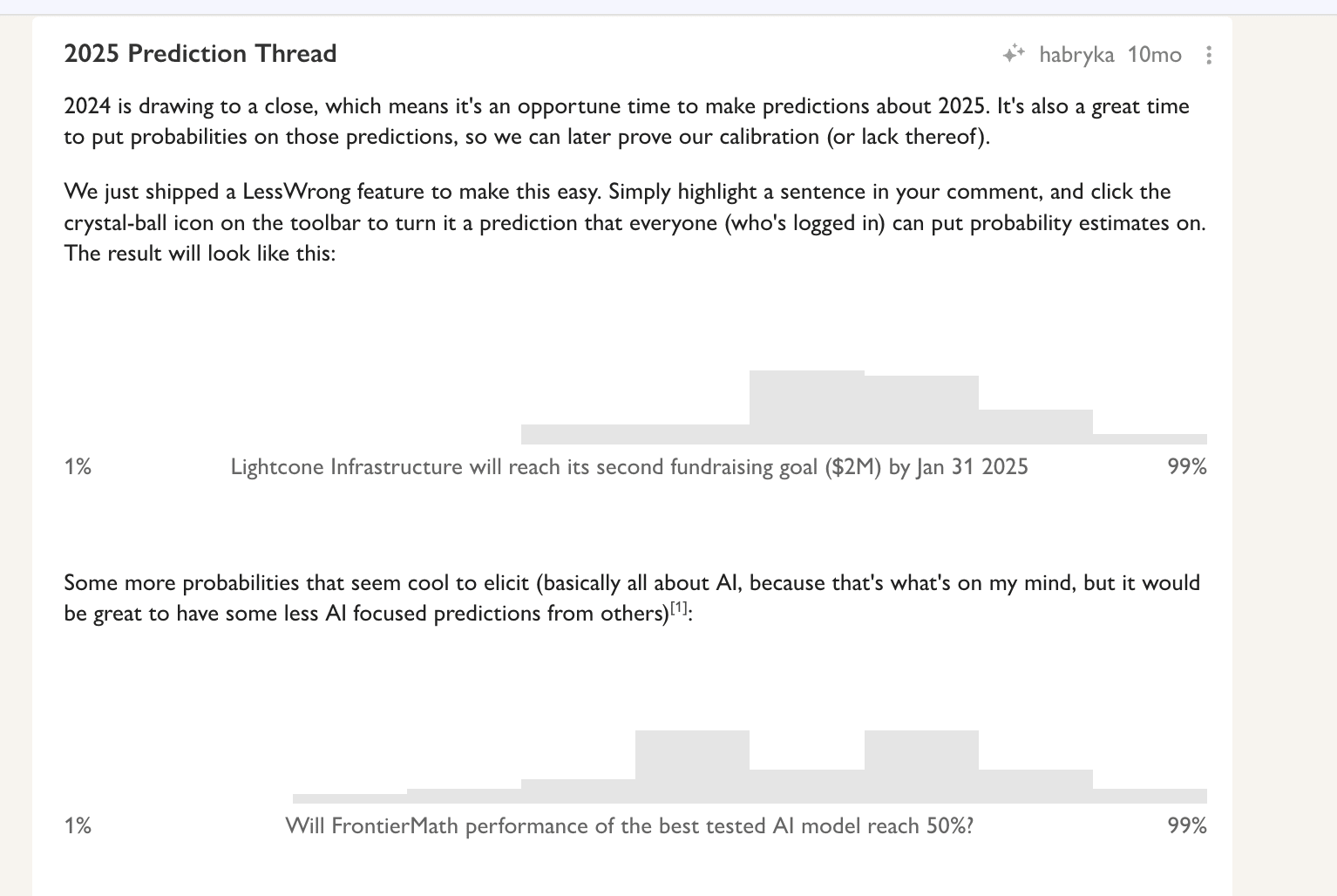 it shows this repeatedly, with many instances of context-for-a-thing. kinda needs a way to mute a post, or something? there’s a “see less like this :sparkles:” but I don’t want to see less, I want to see none of specific things, mainly ones I deem to be distracting drama. I’m not super clear why, but it felt like I saw less drama in the pure-recent-comments mode than this feed is giving me, even with the recommender off—maybe there was a lot of drama lurking under the surface, or maybe the new feed has reset my mental adblock a bit. In general, I want all the randomness gone; randomness feels like it’s ~for making things addictive. The recommender should probably be off by default (or removed entirely), seeing as how those things are cognitohazards, especially when they’re the normal kind rather than some Leo Gao galaxy brain customizeable thing.